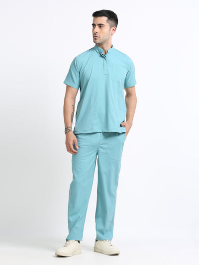 Men’s Sea Green Medical Scrub Set – Mandarin Collar (Chinese Collar) Top & Straight Pants | 2-Way Stretch, Antibacterial & Wrinkle-Resistant – Apollo