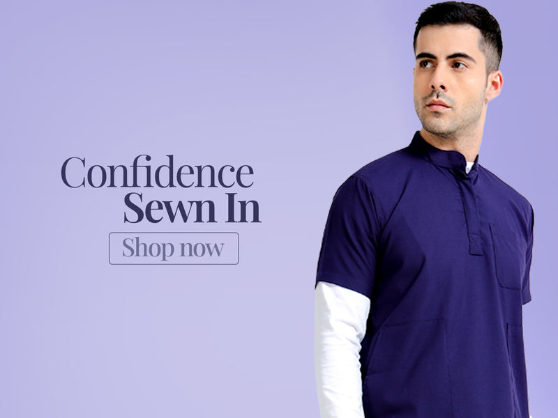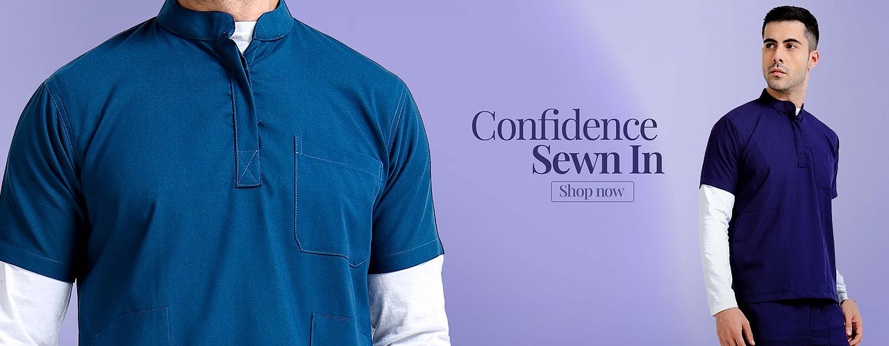 Men’s Galaxy Blue Medical Scrub Set – Mandarin Collar (Chinese Collar) Top & Straight Pants | Wrinkle-Resistant – Eco Flex