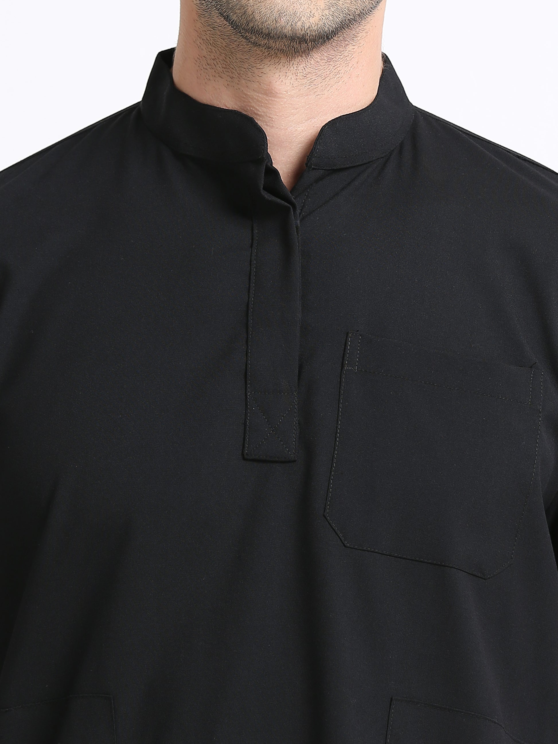 Men’s Black Knight Medical Scrub Set – Mandarin Collar (Chinese Collar) Top & Straight Pants | Wrinkle-Resistant – Eco Flex