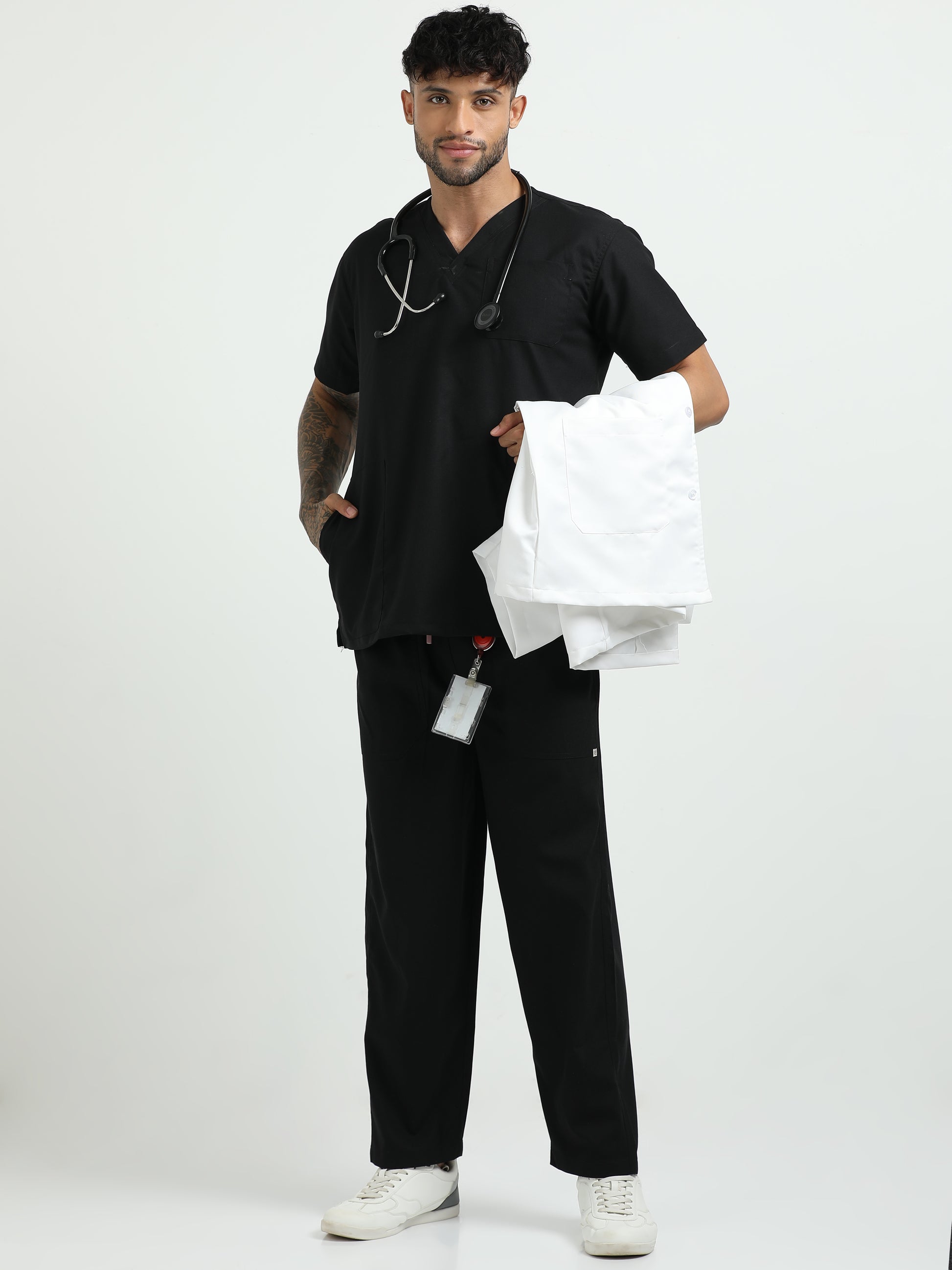 Men’s Black Knight Medical Scrub Set – V-Neck Top & Straight Pants | Twill Fabric, Antibacterial & Fade-Proof – Eco Flex