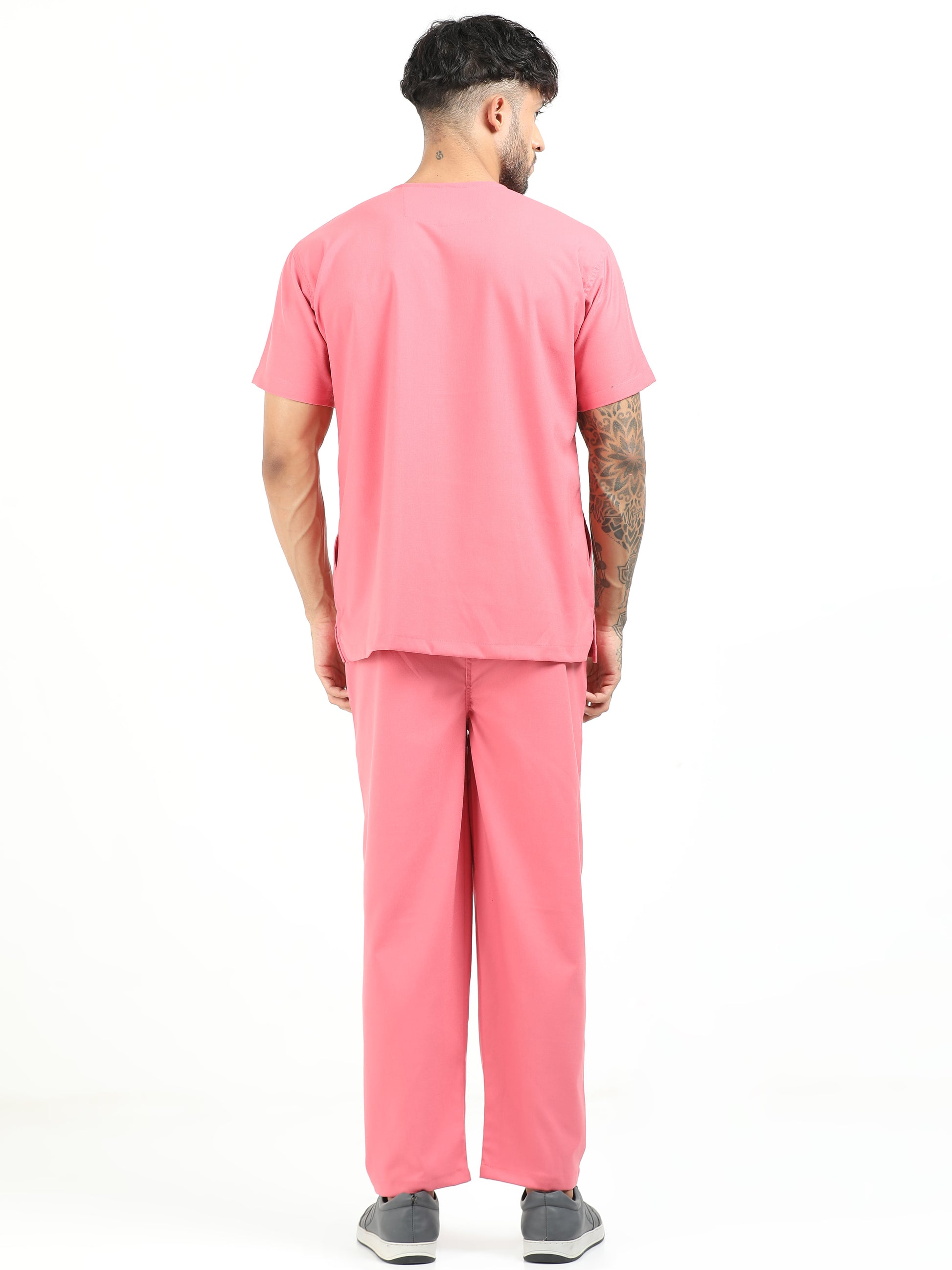 Men’s Mauve Medical Scrub Set – V-Neck Top & Straight Pants | Twill Fabric, Lightweight & Antibacterial – Eco Flex
