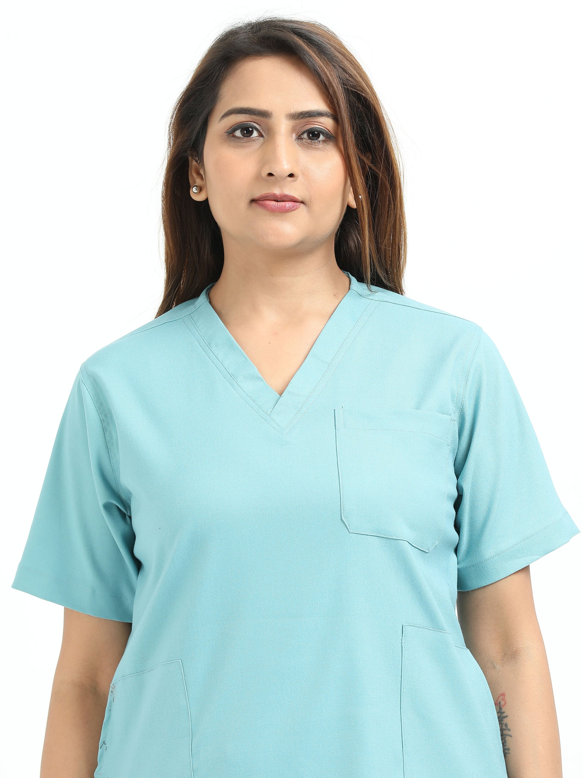 Women’s Sea Green Medical Scrub Set – V-Neck Top & Straight Pants | Twill Fabric, Antibacterial & Quick-Dry – Eco Flex