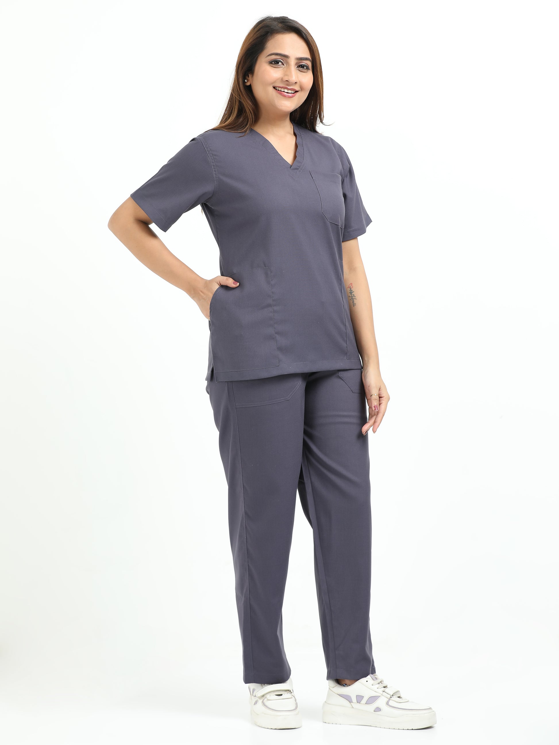 Women’s Heather Grey Medical Scrub Set – V-Neck Top & Straight Pants | Twill Fabric, Antibacterial & Premium Comfort – Eco Flex