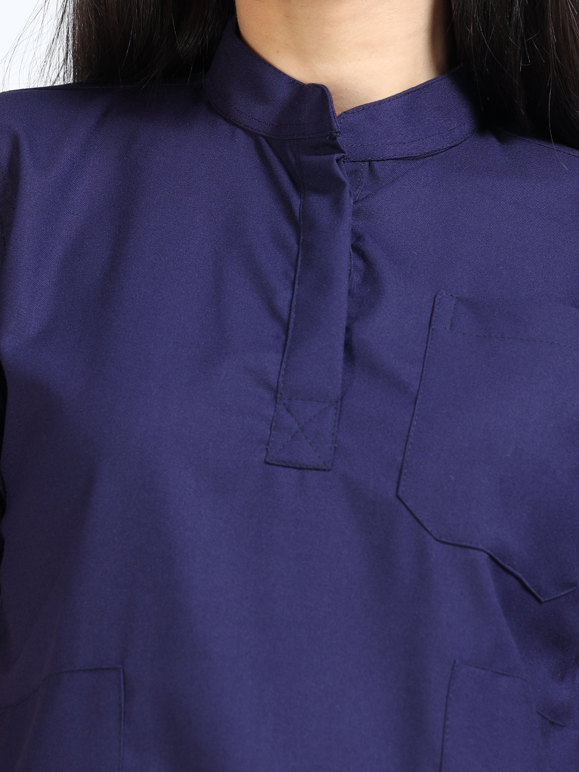 Women’s Navy Medical Scrub Set – Mandarin Collar (Chinese Collar) Top & Straight Pants | Twill Fabric, Antibacterial & Wrinkle-Resistant – Eco Flex