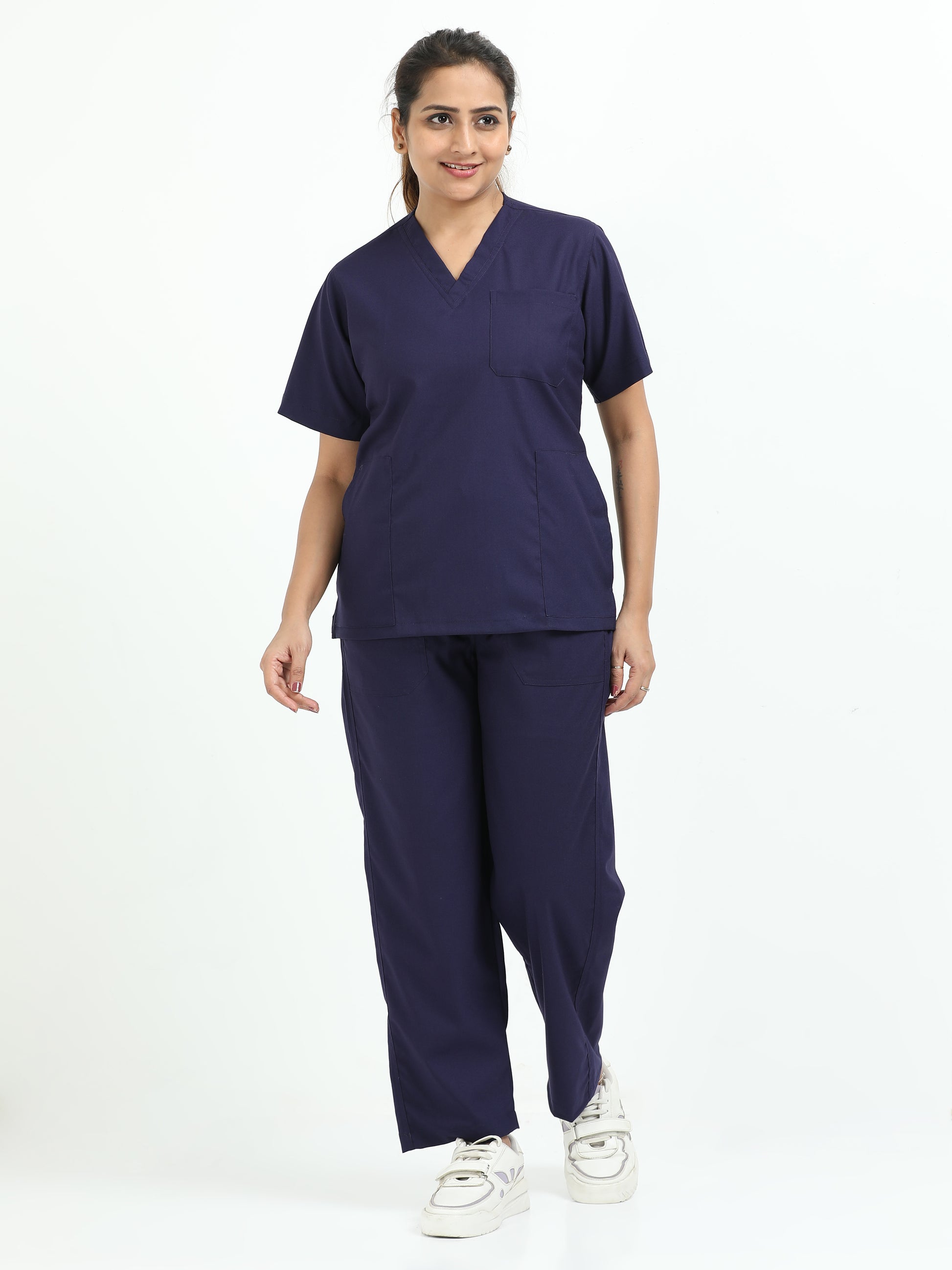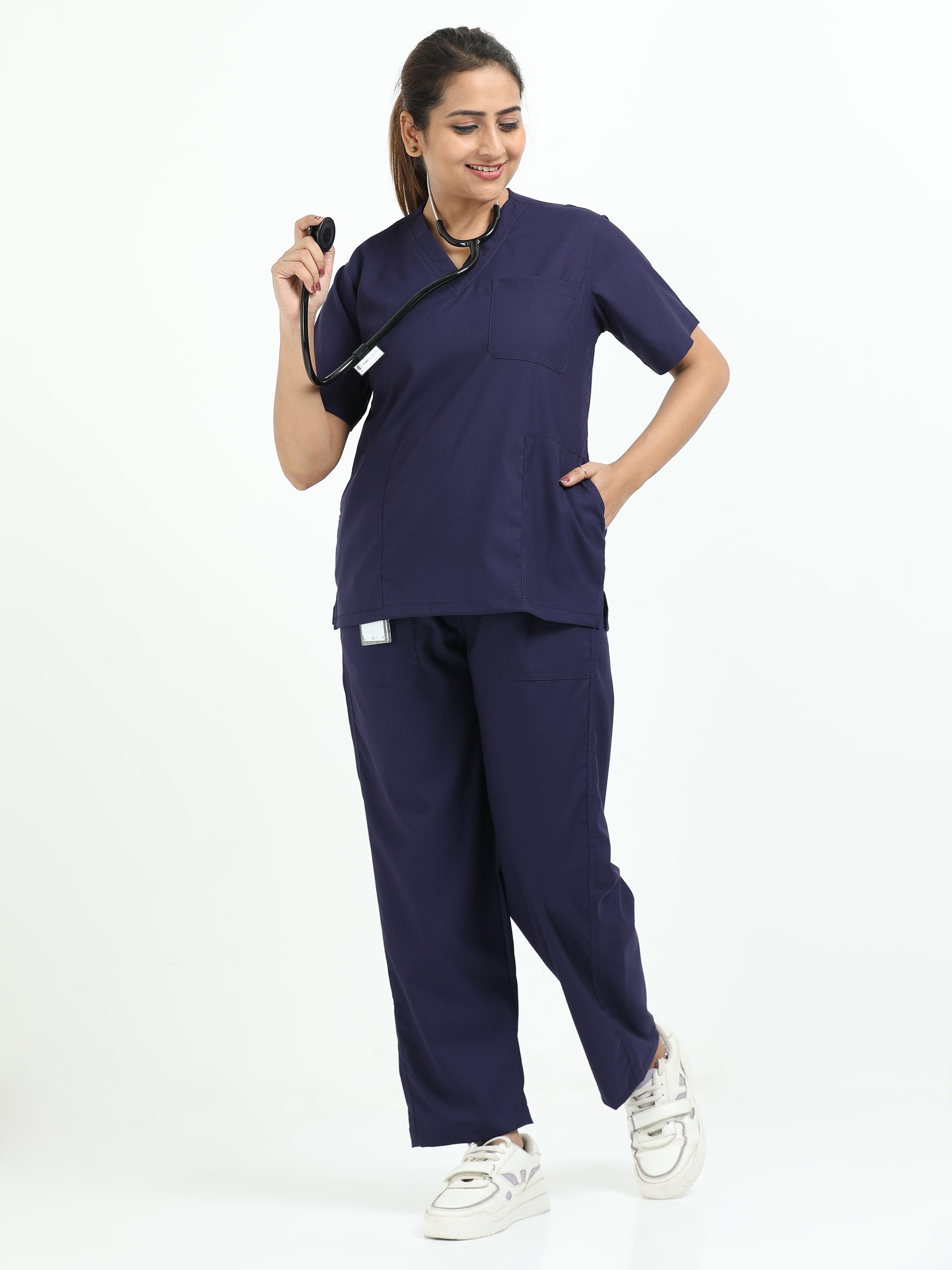 Women’s Navy Medical Scrub Set – V-Neck Top & Straight Pants | Twill Fabric, Antibacterial & Quick-Dry Fabric – Eco Flex