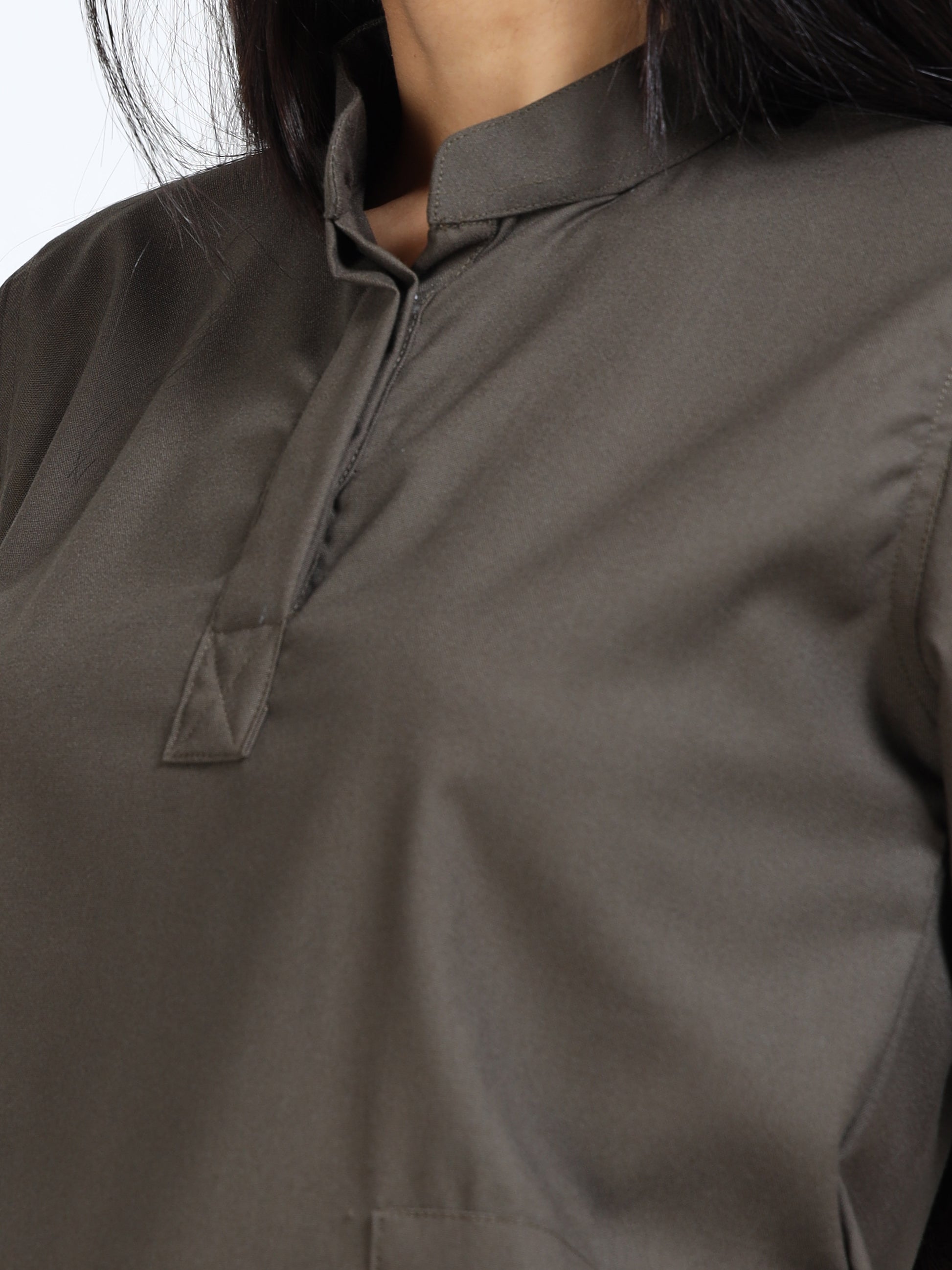 Step into earthy sophistication with our Olive Medical Scrub Set. Designed with a flattering mandarin collar and straight pants, it blends endurance, ease, and style — perfect for long shifts and daily wear.